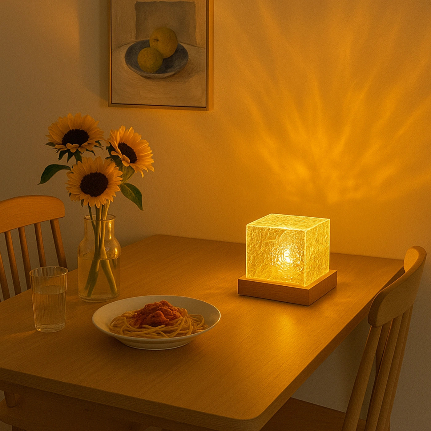 Ich liebe es, wie dieser Wurfel den Raum mit einem sanften und magischen Schein erfullt. Die Holzbasis ist hochwertig und die verschiedenen Farbtone erzeugen immer wieder eine neue Atmosphare.